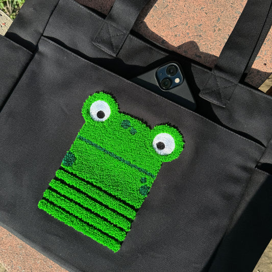 Froggy Tufted Tote Bag (BLACK) πΈ
