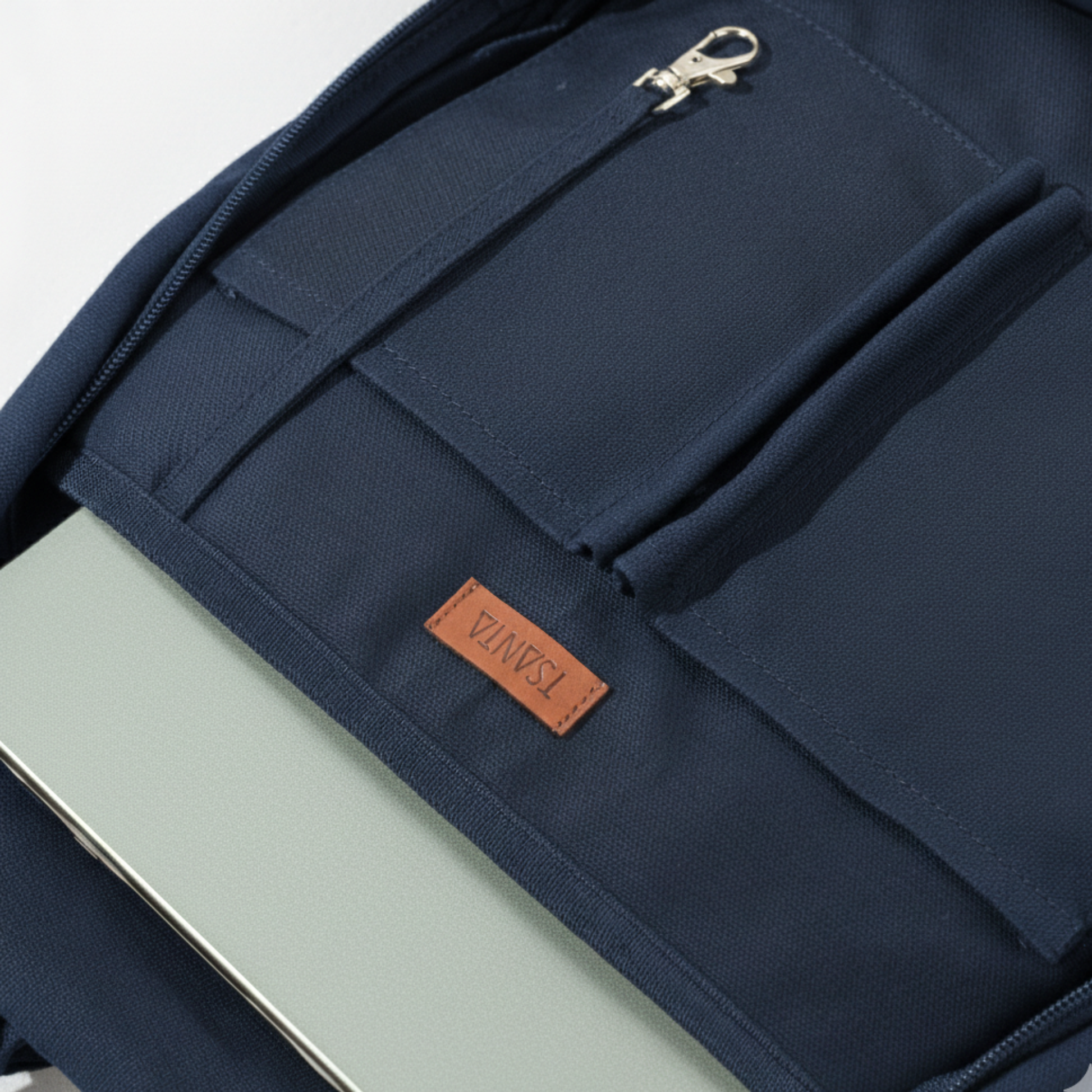 * Adjustable and cushioned shoulder straps with leather trims for an effortless carry